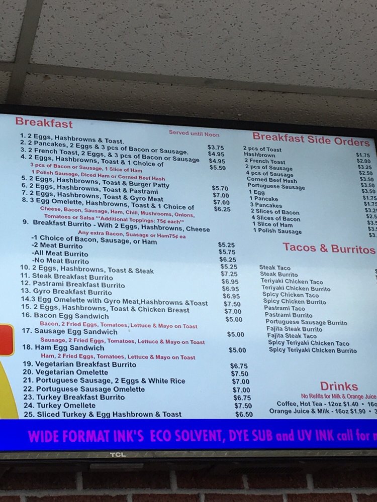“ Breakfast burrito are the best, quick service. Recommend the All Meat Breakfast Burrito. Cheese burger are also very good. ”